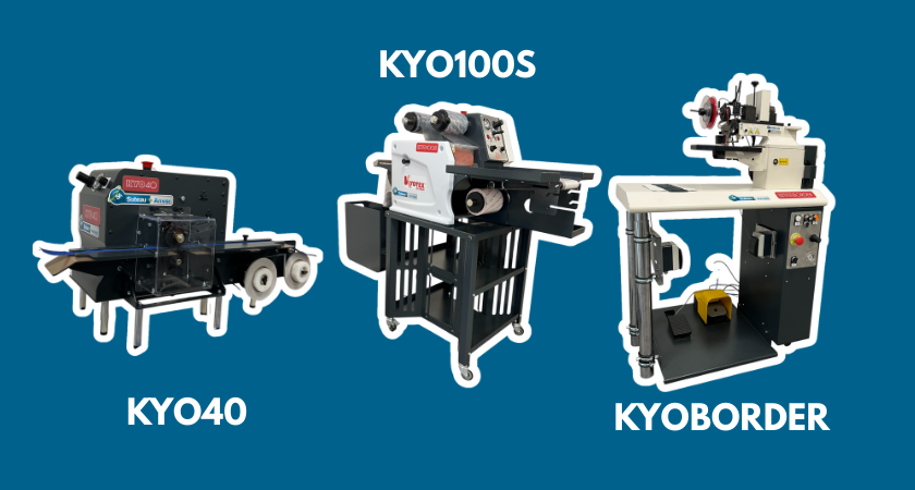 The KYOBORDER is an innovative system designed for the automatic application of adhesive to the edges of leather and textiles. Developed to meet growing market demands, this machine allows for precise edge gluing, both in straight lines and curves, while significantly reducing production times. It can be used offline and adapts to all sizes and types of materials.